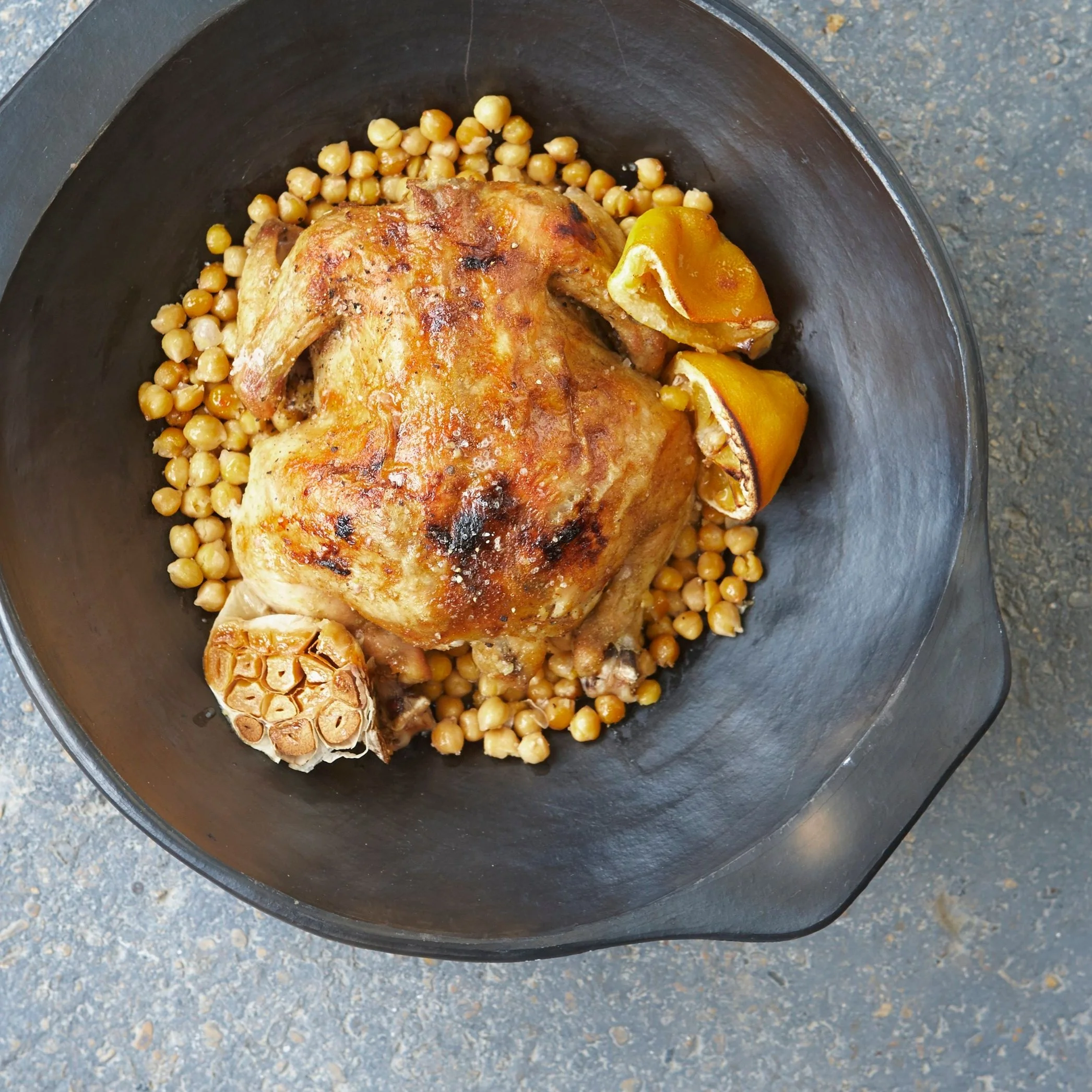 A delightful and simple Middle Eastern roast chicken dinner using only chickpeas, lemon, and cumin, and the very best chicken you can find.