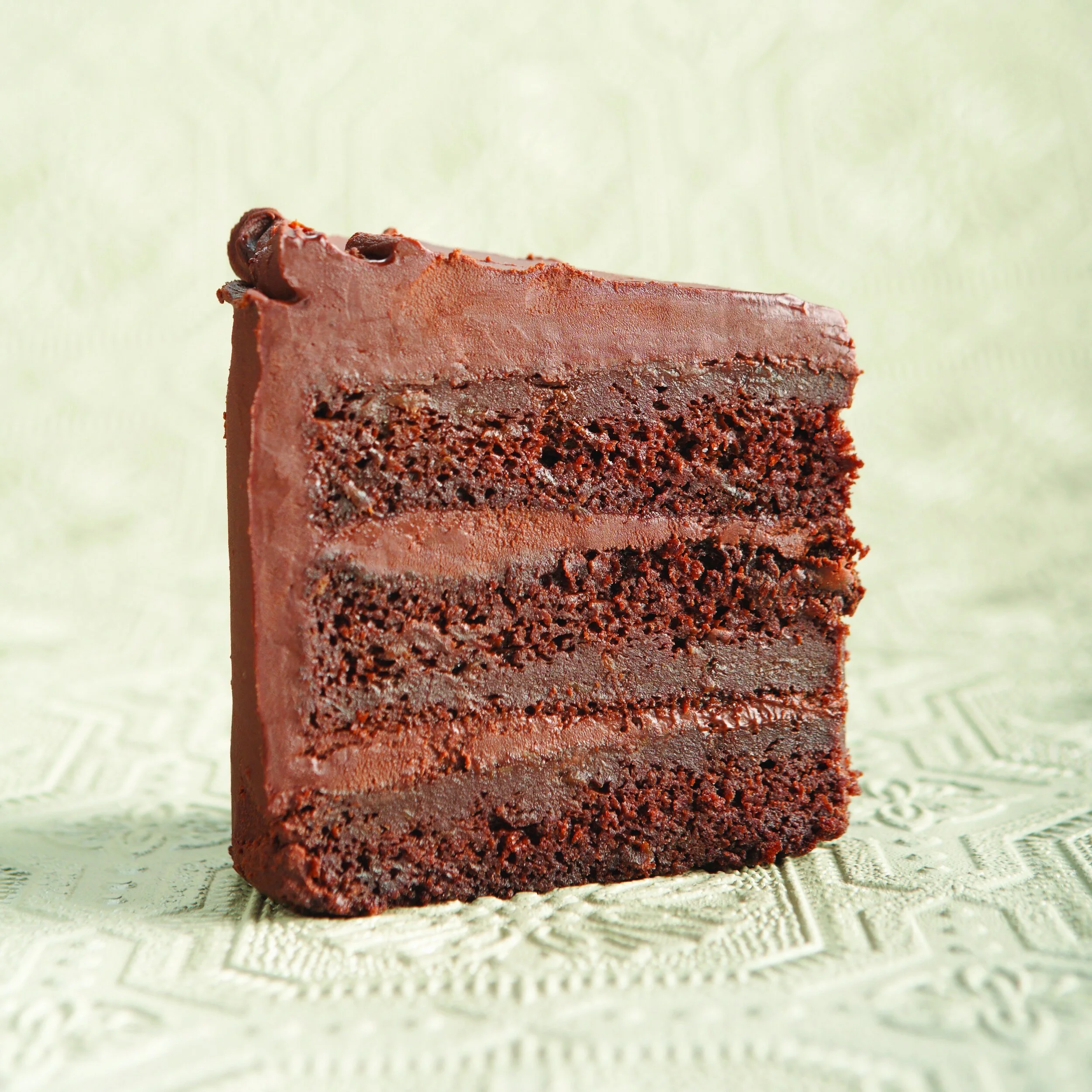 To assemble cake, level the layers with a serrated knife, if necessary. Place the bottom layer on a cake stand or plate. Spread 1 cup room-temperature ganache on the bottom layer. Place the second layer on top and spread 1 cup ganache on top. Top with the third layer and smooth the ganache over the top and sides. Refrigerate until set. Allow cake to come to room temperature before serving. Serves 12. To make your cake more stable when decorating, put it in the refrigerator for half an hour after you fill and stack the layers.