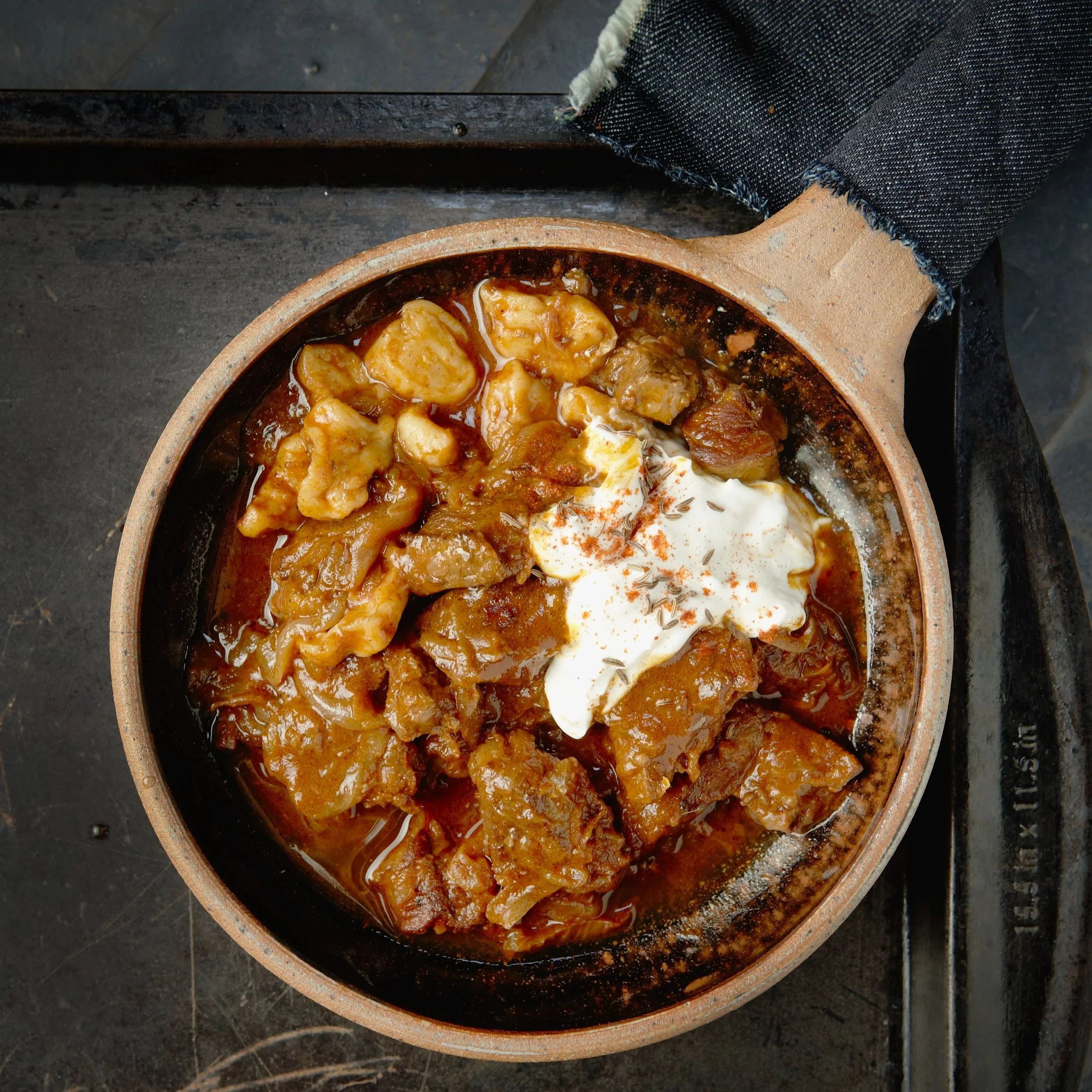 Dumplings are the perfect traditional finish to our rich and flavourful goulash. Beef and vegetables simmered over time with smoked paprika, yum!