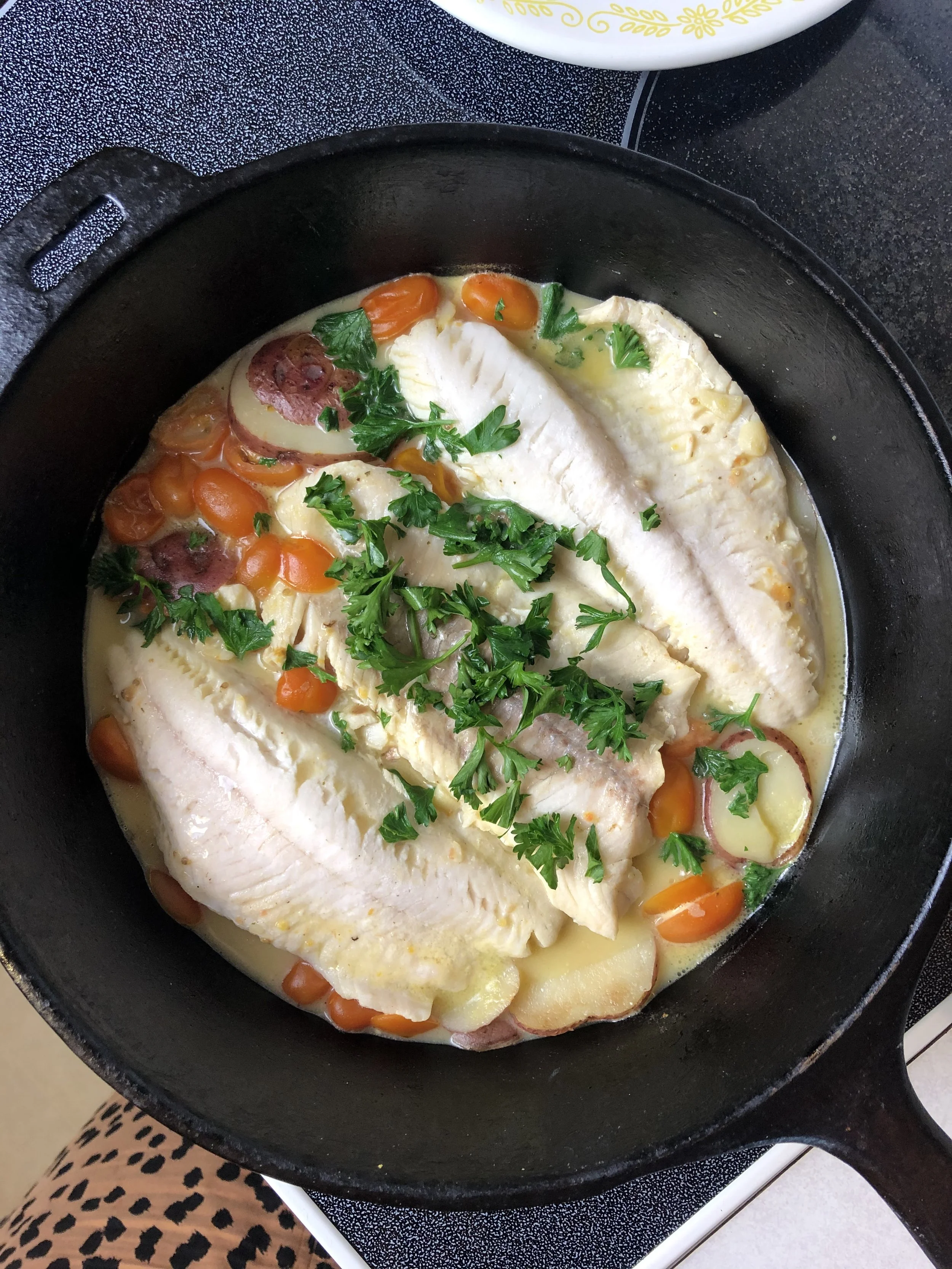 As delicious as it gets, fresh pickerel, or tilapia, or another white fish will do. You’ll fall in love with how easy this recipe really is, all in one pot, under 20 minutes, and it’s healthy and delicious.