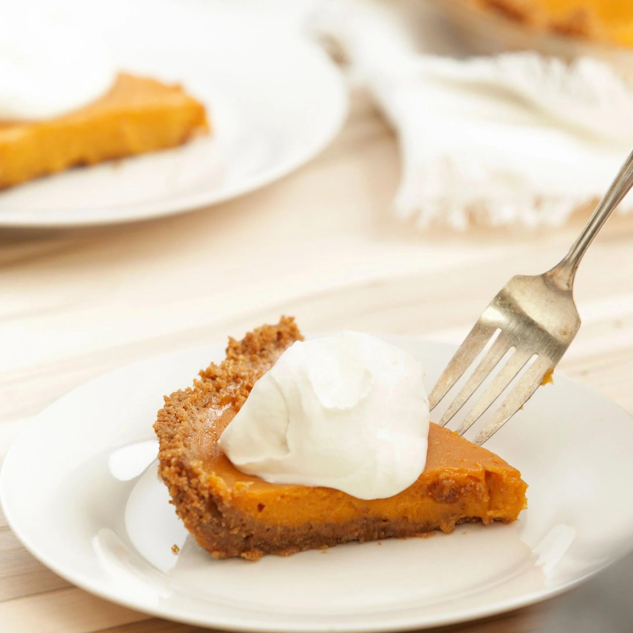 A delicious twist on the traditional pumpkin pie. No fussing with pie dough when you make our easy gingersnap crust. We prefer our pie on the less-sweet side, served with sweetened maple whipped cream.